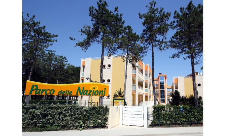 Parco delle Nazioni ist eine Residenz mit Swimmingpool in Bibione Lido del Sole, etwa 600 Meter vom Strand entfernt, in der Nähe von Geschäften und Restaurants.