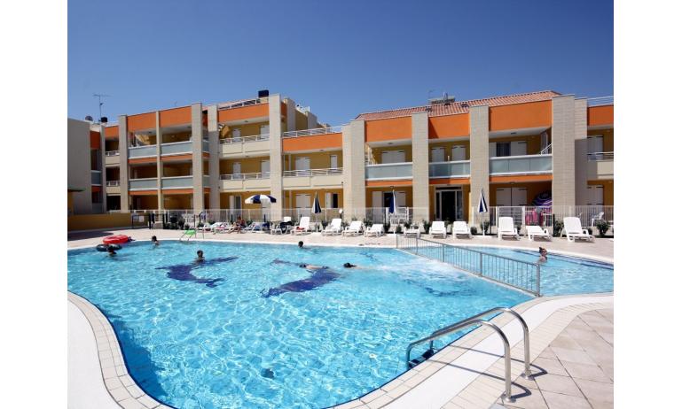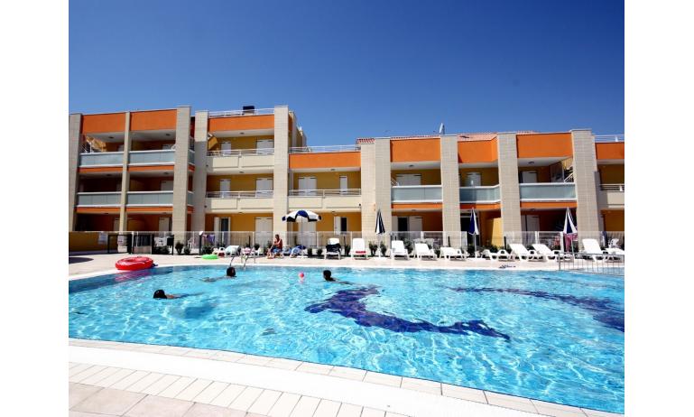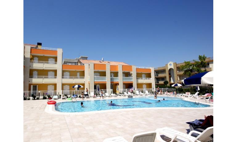 Der gemeinsame Außenbereich zeichnet sich durch einen großen Swimmingpool für Erwachsene und Kinder aus, der mit Sonnenliegen ausgestattet ist.