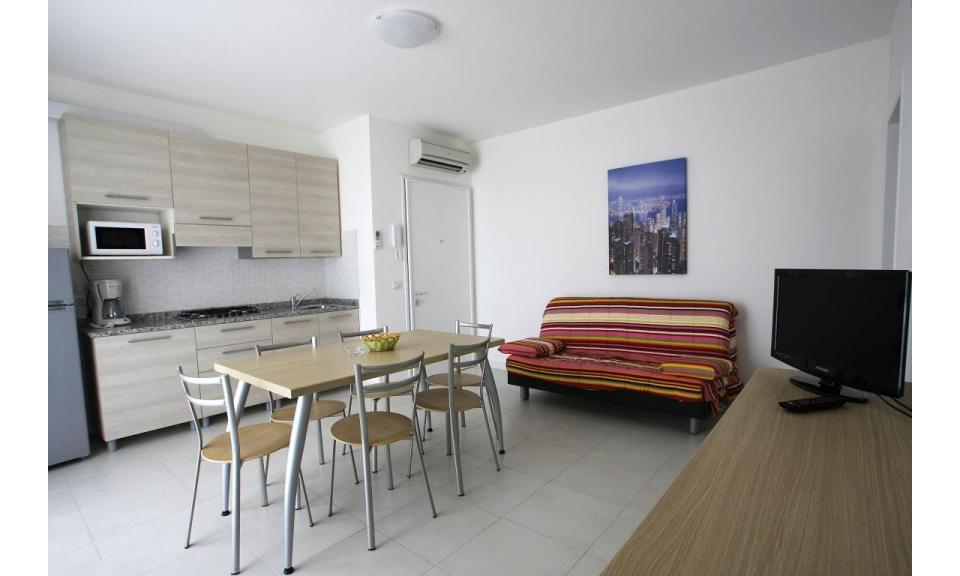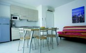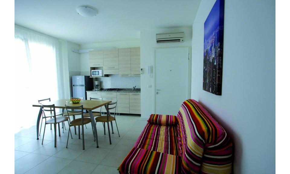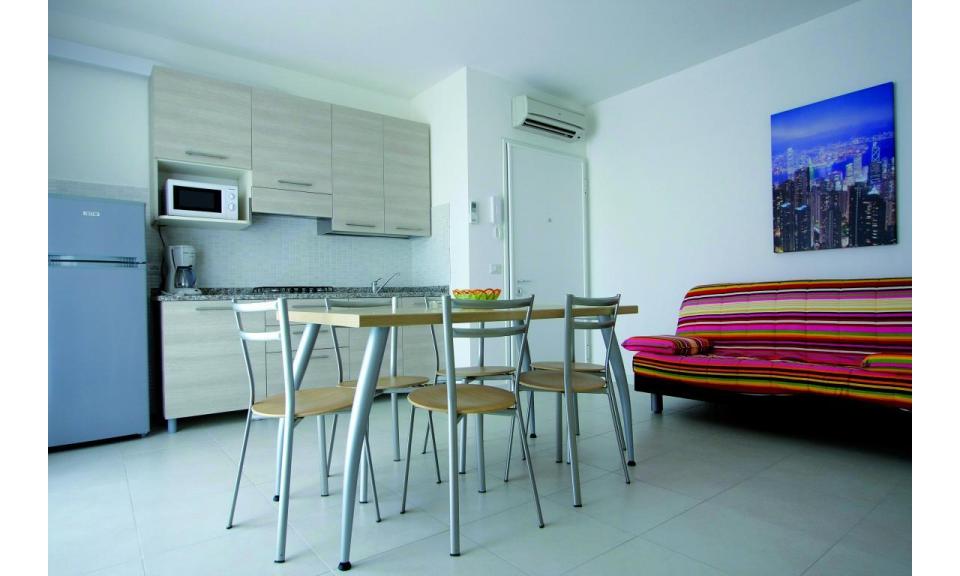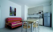 A3: Studio-Apartment (ca. 30 m2) im ersten Stock, bestehend aus einem Wohnzimmer mit Kochnische, 1 Doppelschlafsofa und 2 Einzelsesselbetten, Badezimmer mit Duschkabine und Balkon. - maximal 3 Personen