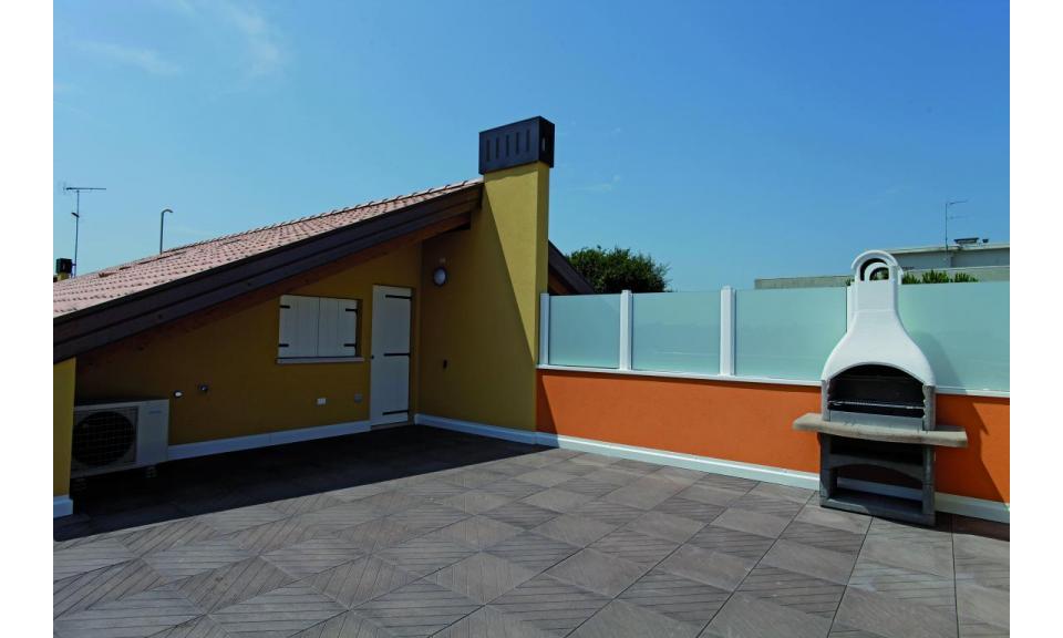 C.I.N. : IT027034B4ZVUGVCPYC7: Dreizimmerwohnung im 2. Stock + Dachgeschoss: im Untergeschoss gibt es ein Wohnzimmer mit Kochnische und Doppelschlafcouch, ein Doppelzimmer mit drittem Bett, ein Schlafzimmer mit zwei Einzelbetten, Badezimmer mit Duschkabine und großer Balkon; Im oberen Dachgeschoss, das über eine Außenwendeltreppe erreichbar ist, gibt es eine große Panoramaterrasse mit Kamin, ein zweites Badezimmer mit Dusche und ein Schlafzimmer mit Doppelschlafsofa. - maximal 9 Personen