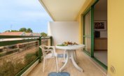 B5: Zweizimmerwohnung, einfach aber komfortabel eingerichtet, bestehend aus Wohnzimmer mit Kochnische und Doppelschlafcouch, Schlafzimmer mit Doppelbett und Einzelbett, Bad mit Dusche (einige mit Duschkabine, andere mit Duschvorhang), möblierter Balkon.