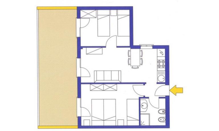 The aparthotel ASHANTI is situated at Bibione Spiaggia, directly in front of the beach, close to the main shopping street.