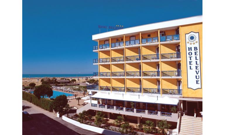 L' hôtel BELLEVUE a été rénové pendant l'année 2001 et se trouve en face de la plage à environ 100 m du centre. Les chambres confortables sont toutes équipées de services privés, sèche-cheveux, air conditionné, téléphone, accès Internet-Lan (câble), coffre-fort, TV par satellite, mini bar et balcon. Certaines chambres bénéficient de la vue mer frontale (sur demande avec supplément). Entièrement climatisé l'hôtel offre aux clients plage privée, piscine pour adultes et enfants, court de tennis et bowling (coût supplémentaire). Bar, internet-point (coût supplémentaire), jardin et aire de jeux, salle de télévision, miniclub et location gratuite de vélo. Ascenseur, place de parc privée et garage (sur demande avec supplément).