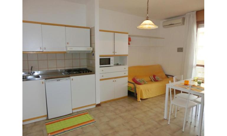 The ITACA apartments in Bibione, one, two and three room flats, are equipped with air conditioning and TV, safe, fridge with freezer and furnished terrace with side sea view.