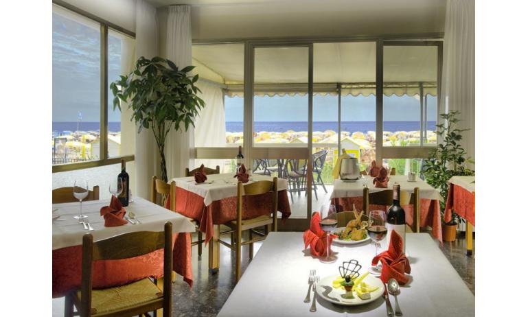Lounge bar e terrazza con vista panoramica sulla spiaggia privata, bar, sala TV e sala ristorante. Servizio noleggio biciclette gratuito, internet point nella hall ed accesso Wifi disponibile in tutto l'hotel. Ascensore e parcheggio custodito e coperto a circa 300 m. - su richiesta e con supplemento.