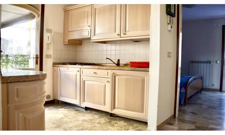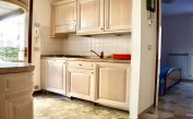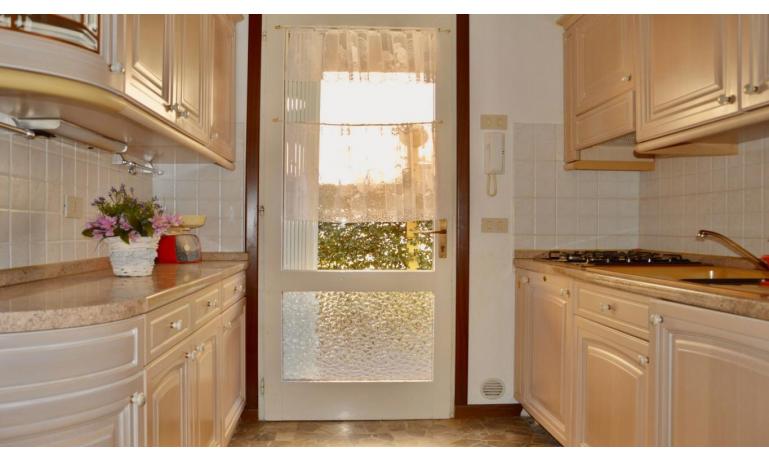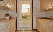 Van egy főzőfülke, amely a világos nappalitól elkülönítve található, és egy szolgáltatási ajtó vezet a kültérre.