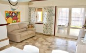 Az apartman klímaberendezéssel (split egység a felső lépcsőházban), mosógéppel, műholdas TV-vel, és egy terasszal rendelkezik, amely asztallal és székekkel van felszerelve.