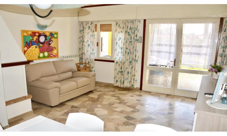 C6: Két szintes ház (kb. 60 m²) nagy, kerített kerttel, amely az alsó szinten világos nappalit, külön főzőfülkét, amely a kültérrel kommunikál, franciaágyas hálószobát, és egy teraszt tartalmaz, asztallal és székekkel, ideális kültéri étkezéshez. Az belső lépcsőn felérve egy térkövet találunk 2 fekvőhelyel, egy franciaágyas hálószobával, és egy zuhanyzós fürdőszobával. Max. 6 fő.