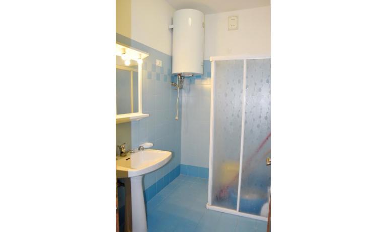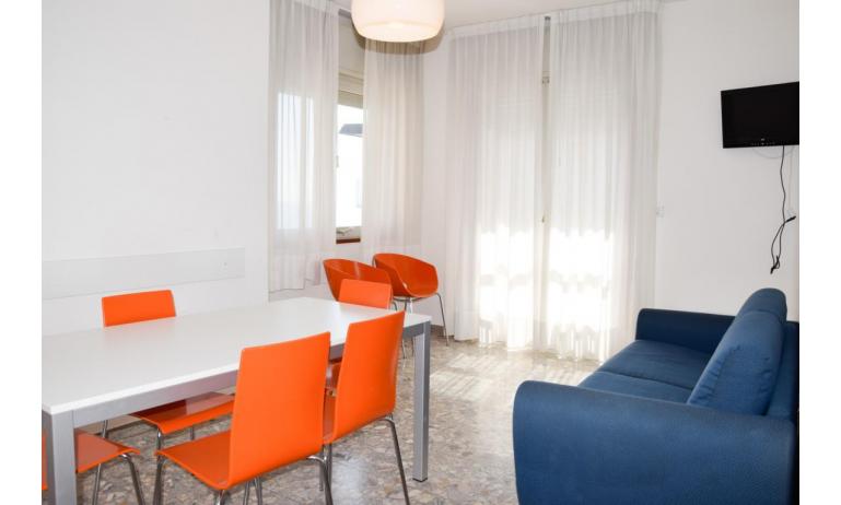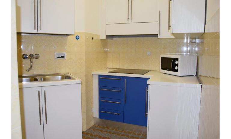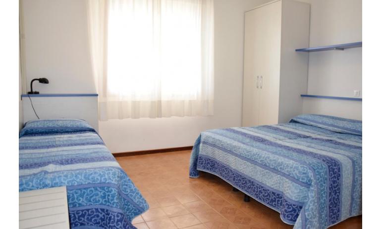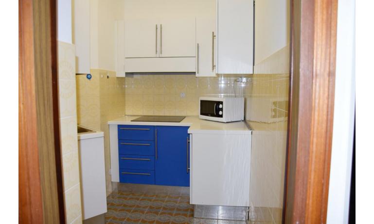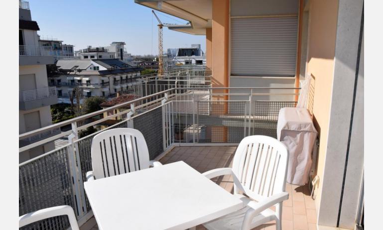 B5: composto da soggiorno con angolo cottura e divano letto per due persone, camera con un letto matrimoniale e un letto singolo, bagno con doccia e balcone vista mare laterale; dispone di aria condizionata, un posto auto all'aperto e un posto spiaggia. - Max 5 persone