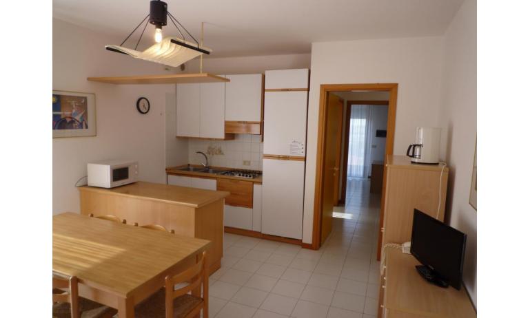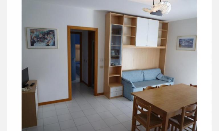 C4: soggiorno con angolo cottura, 1 camera matrimoniale, 1 cameretta con letto a castello, bagno con doccia. Terrazzo. - max 4 persone (su richiesta 5 persone - possibilità di 1 divano letto in soggiorno - vedi supplemento)