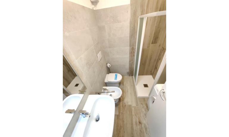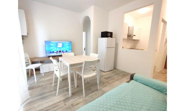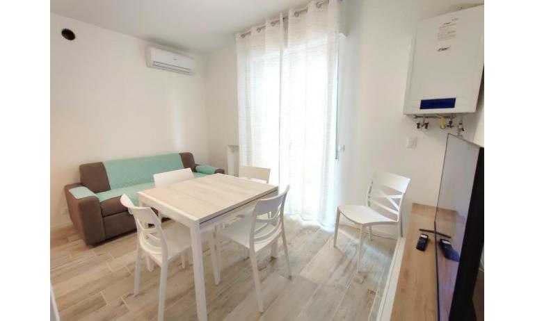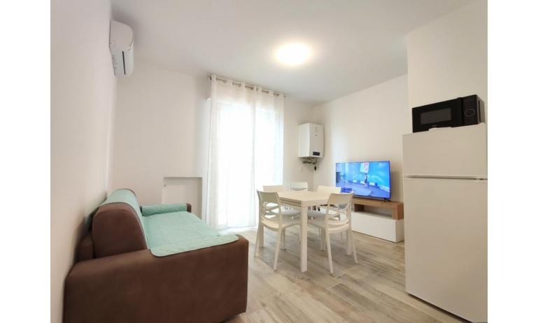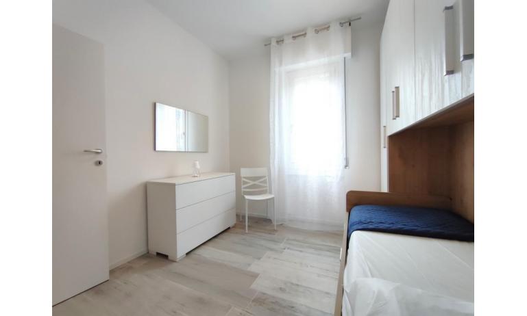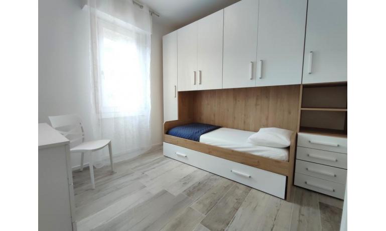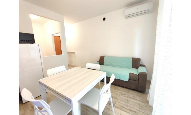 C5: appartamento trilocale situato al piano rialzato e composto da camera da letto matrimoniale, cameretta con due letti singoli, soggiorno con angolo cottura e divano letto per 1 persona, bagno con box doccia e balcone con vista mare laterale. No posto auto - max 5 persone