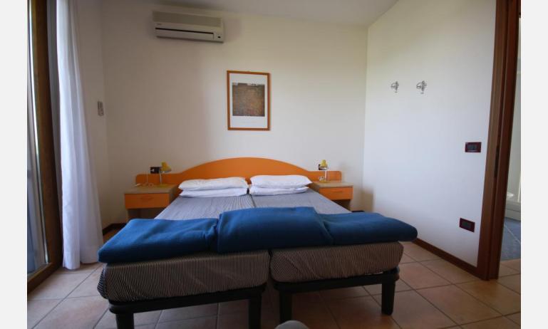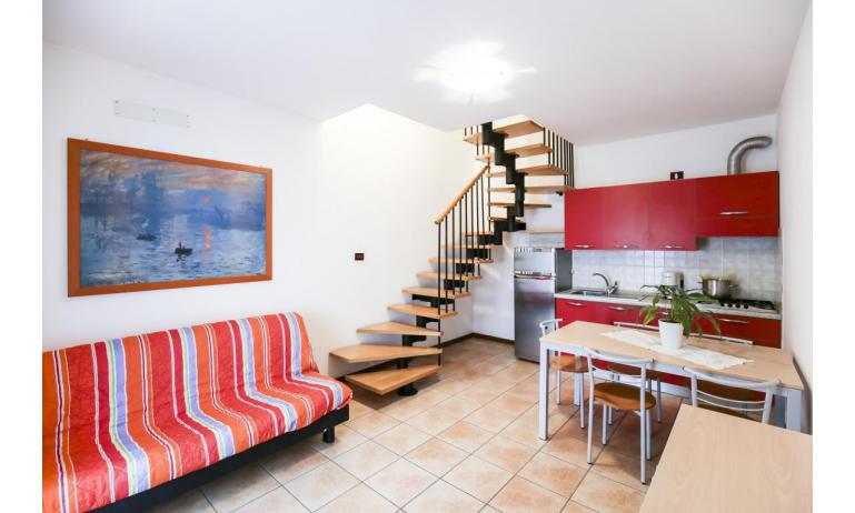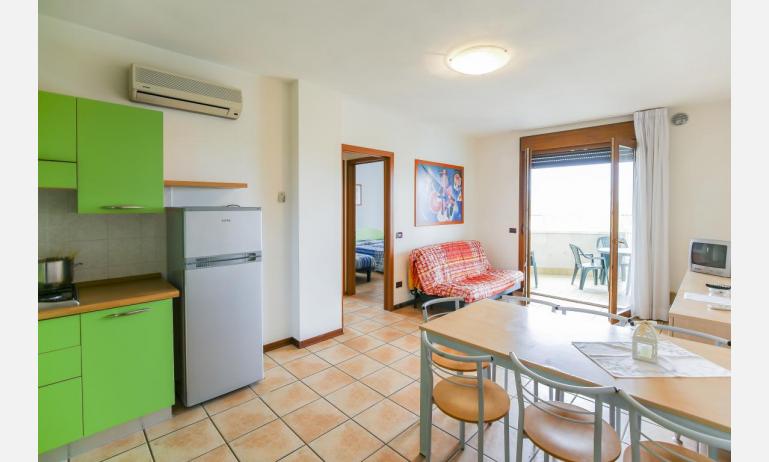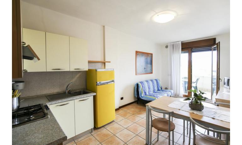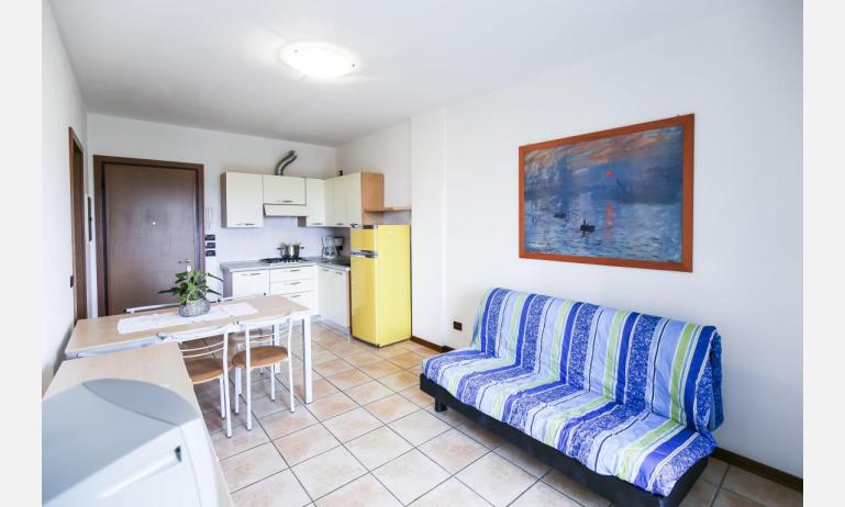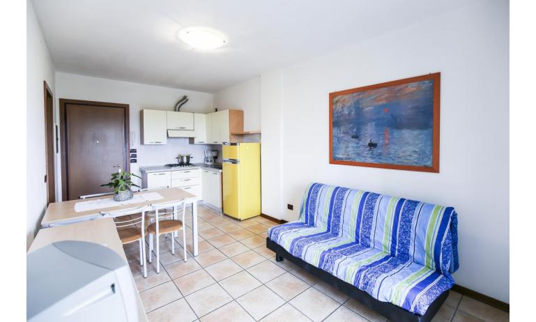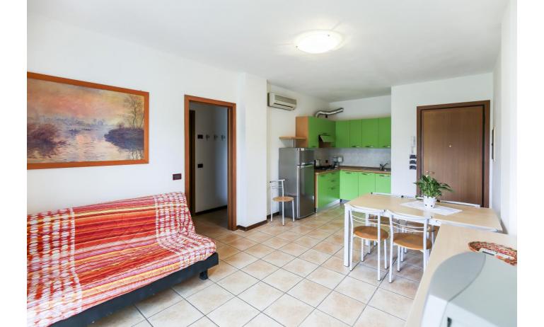 B5: (circa 40 m2) 1 camera con letto matrimoniale + letto singolo, soggiorno con angolo cottura e divano letto doppio, bagno con box doccia. Balcone. - max 5 persone