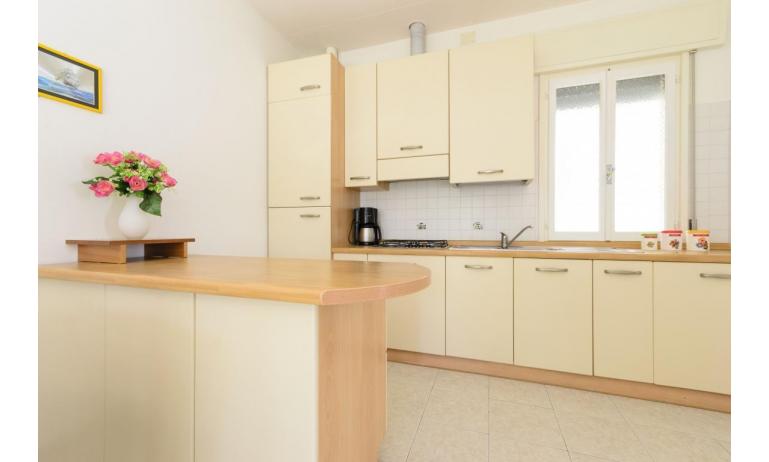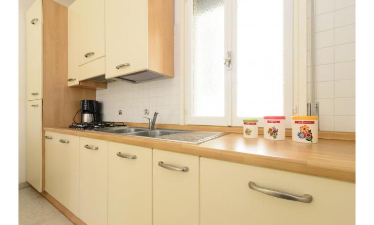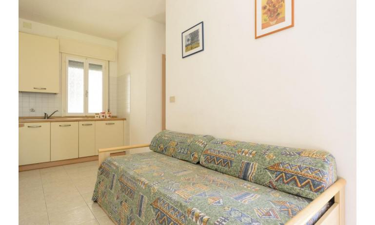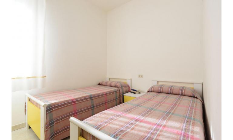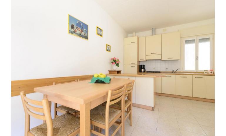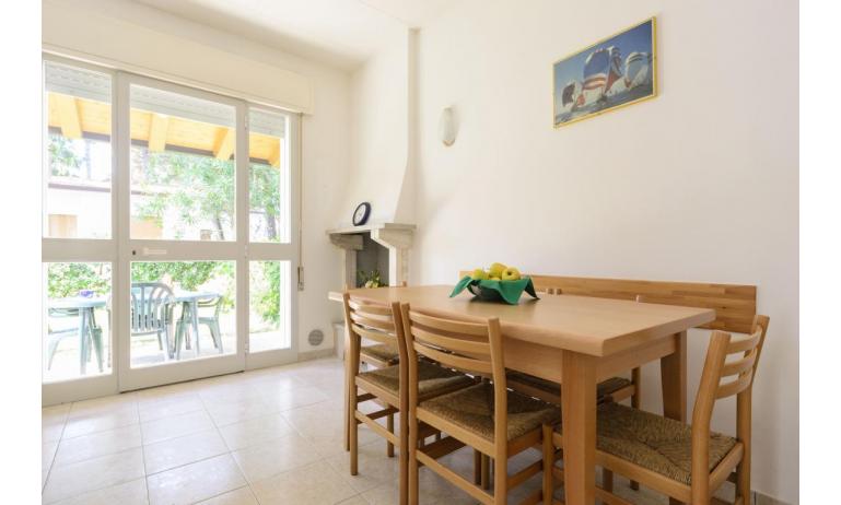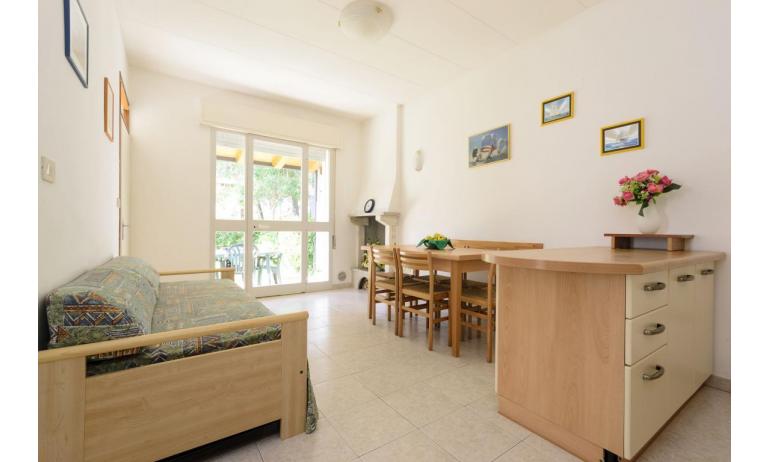 C6/DF: appartamento trilocale composto da soggiorno con angolo cottura, zona pranzo e divano letto doppio, camera matrimoniale, camera con 2 letti singoli, bagno con box doccia e phon, giardino con terrazzo arredato per mangiare all'aperto. Massimo 6 persone.