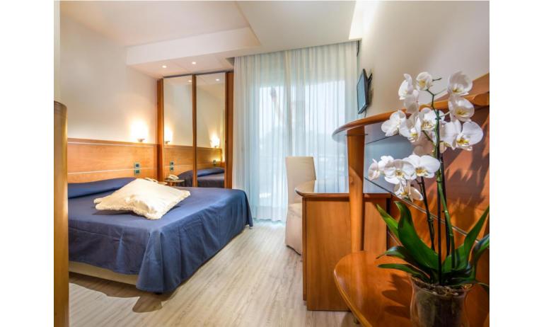 Tutte le camere nuove sono moderne ed eleganti dotate di servizi privati con box doccia ed asciugacapelli, TV- Sat Lcd, aria condizionata, minibar, cassaforte e balcone con vista piscina o sulla terrazza/solarium. A disposizione degli ospiti una comoda piscina e la Terrazza delle Palme che dispone di un solarium con lettini e teli piscina, vasca idromassaggio.