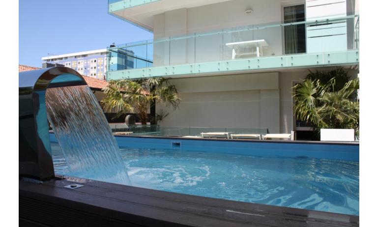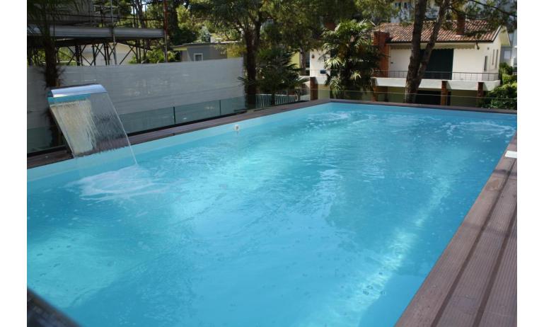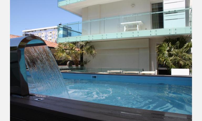 Tra il primo ed il secondo piano (non servito da ascensore, circa 20 gradini) è stata realizzata un' area relax esterna, composta da solarium e piscina (7 mt x 3 mt) con vasca d'acqua profonda 1,20 metri dotata di 3 postazioni per idromassaggio lombare ed una cascata cervicale.