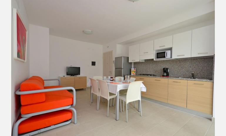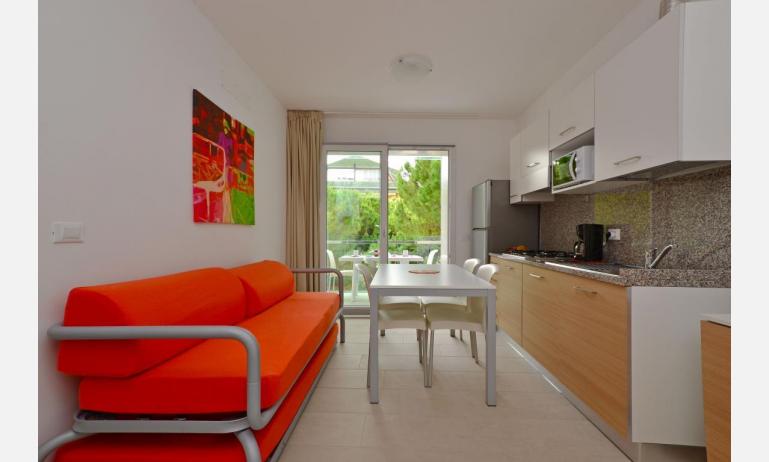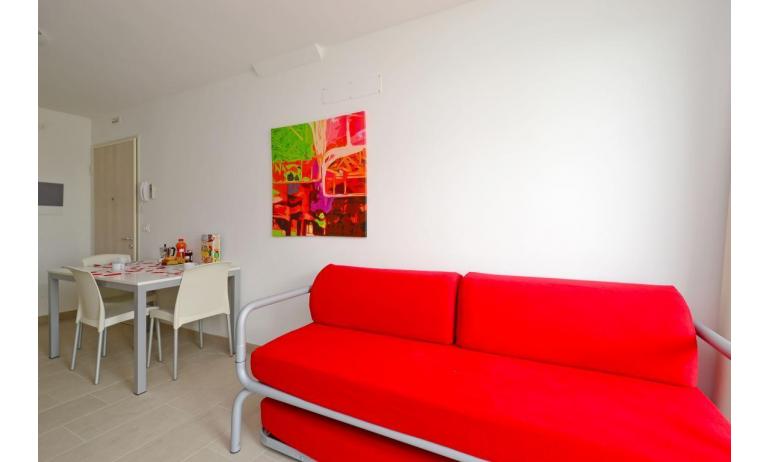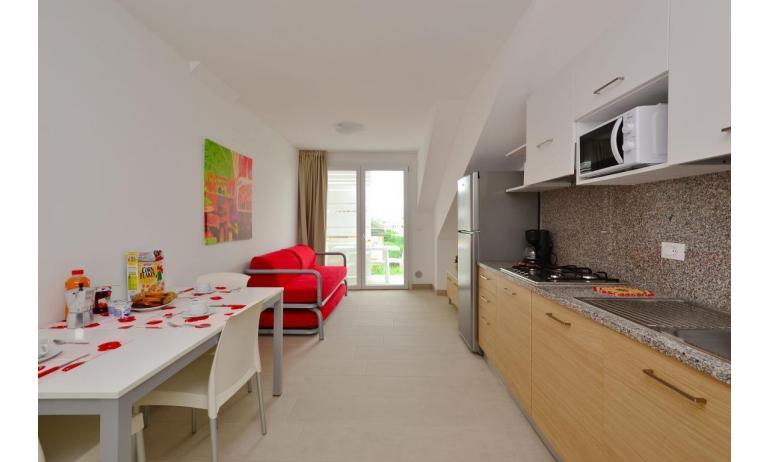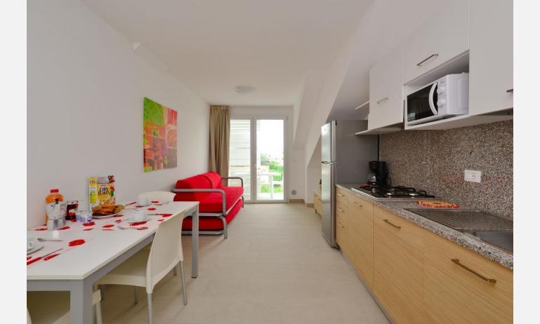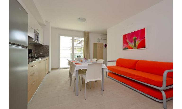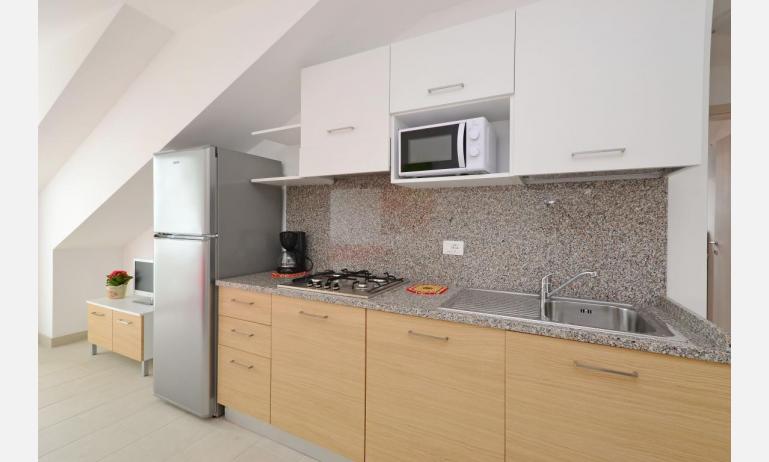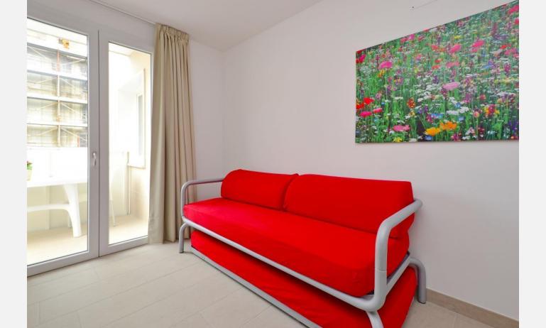 B4: (40 m2) soggiorno con angolo cottura e divano letto singolo, camera mansardata con letto matrimoniale + letto singolo, bagno con box doccia, balcone. - max 4 persone