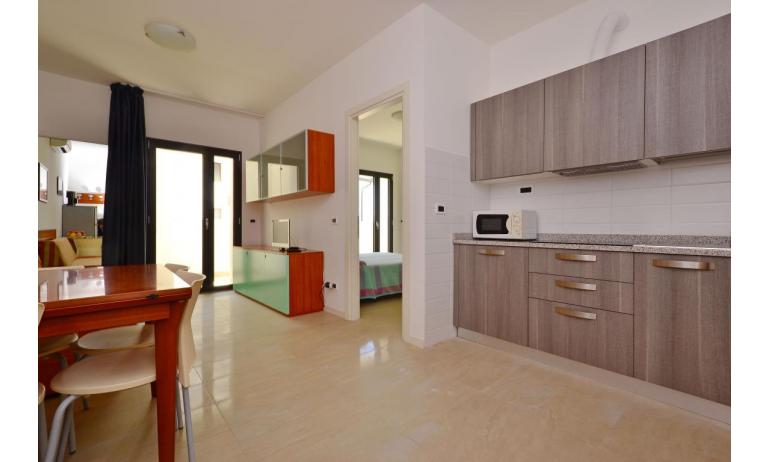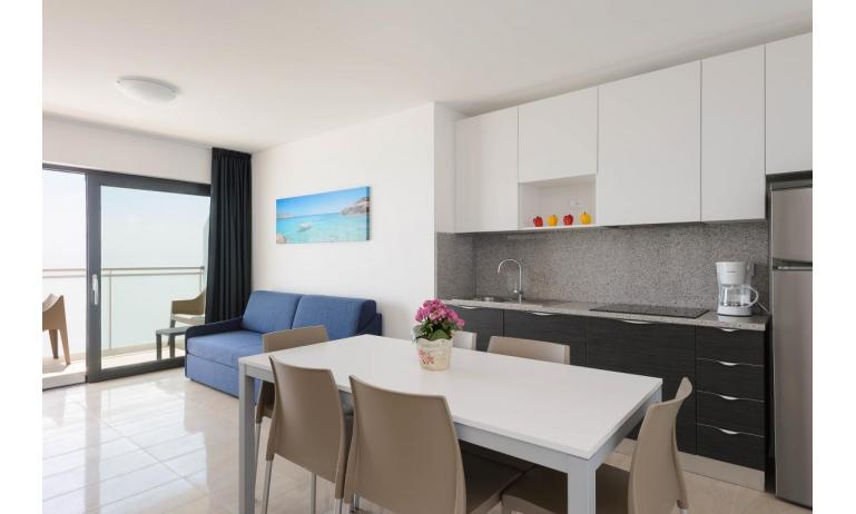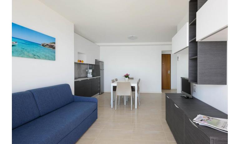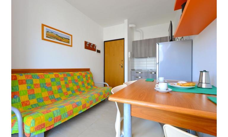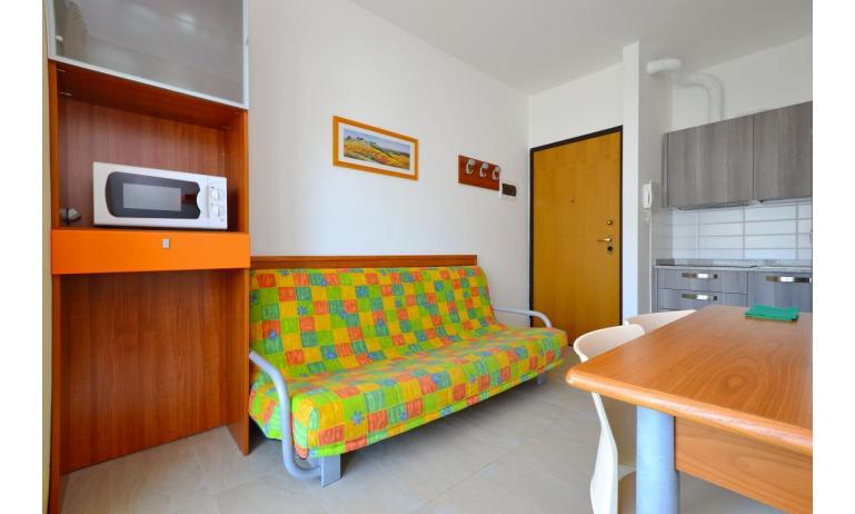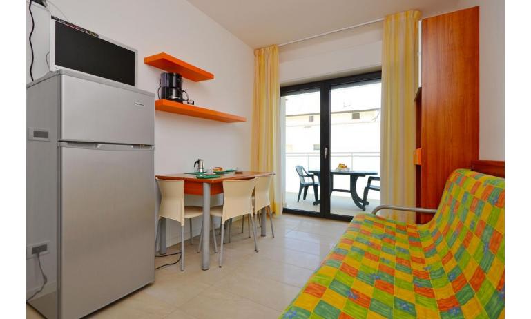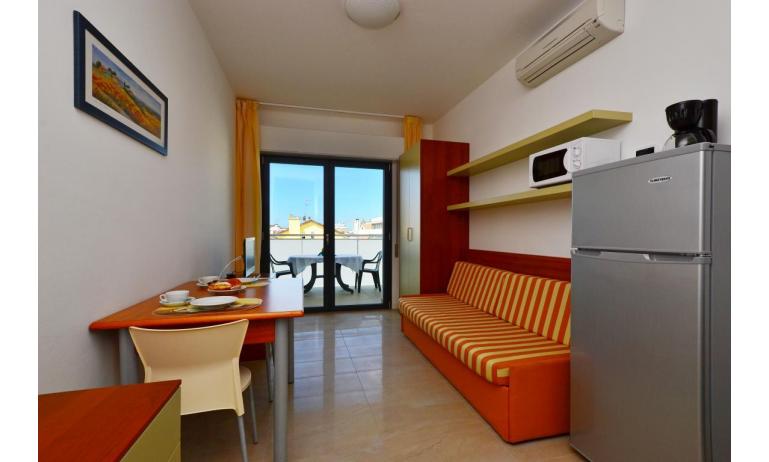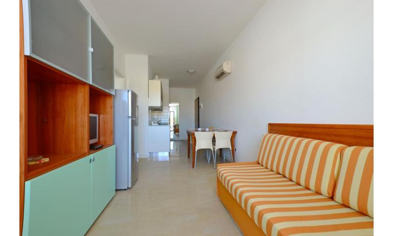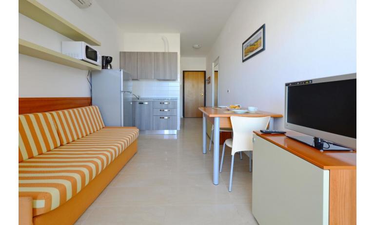 B3: (30 m2) soggiorno con angolo cottura e divano letto singolo, camera matrimoniale, bagno con box doccia, balcone ammobiliato con tavolo e sedie per mangiare all'aperto. - max 3 persone