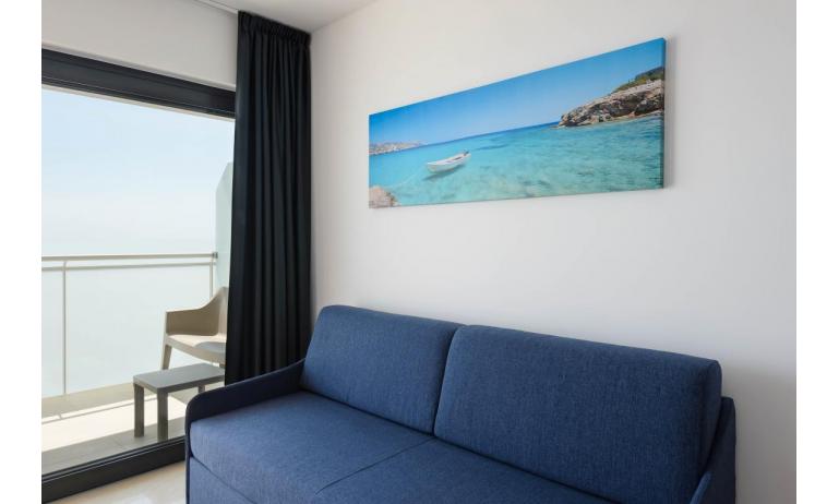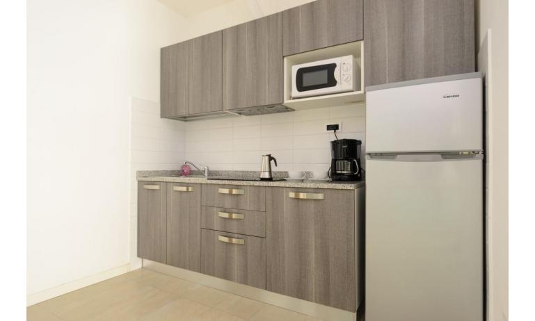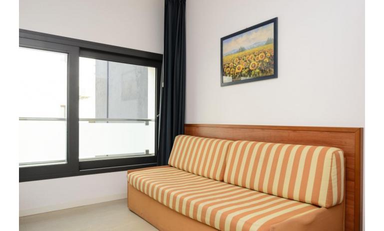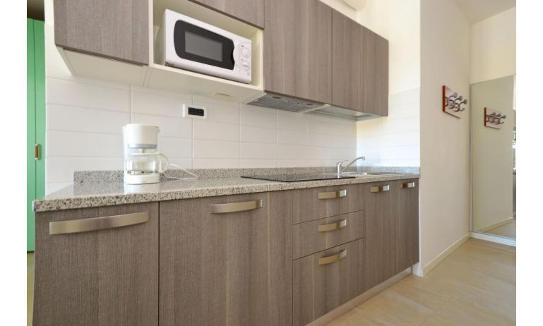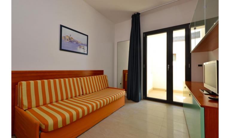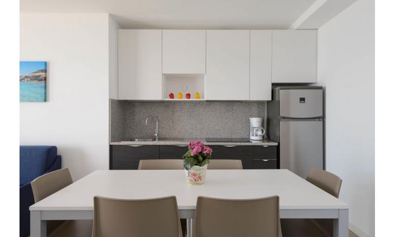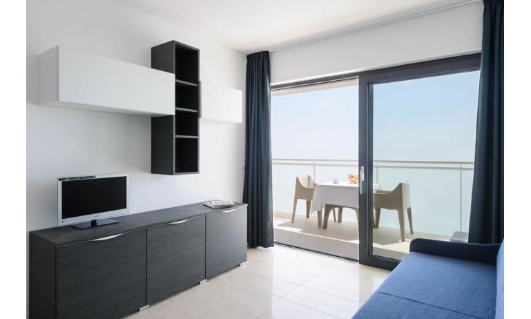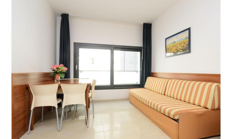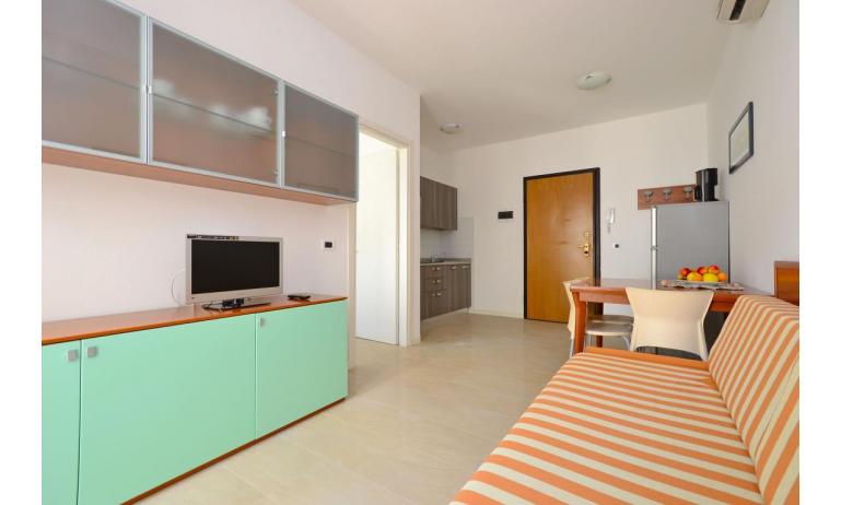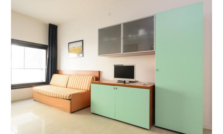 B3: (30 m2) soggiorno con angolo cottura e divano letto singolo, camera matrimoniale, bagno con box doccia, balcone ammobiliato con tavolo e sedie per mangiare all'aperto. - max 3 persone
