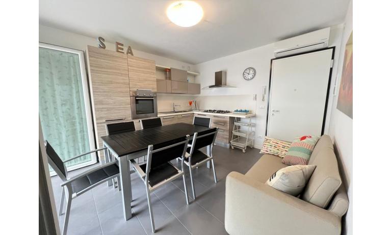 C5/5: appartamento trilocale situato al 3. piano e composto da soggiorno con angolo cottura, zona pranzo e divano letto doppio, una camera matrimoniale, una camera con letto singolo, bagno con box doccia. - massimo 5 persone