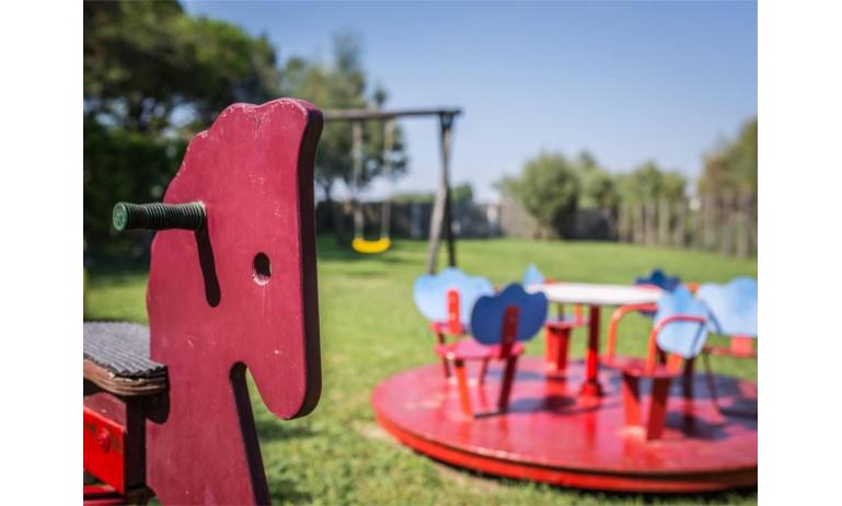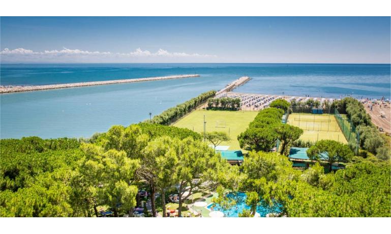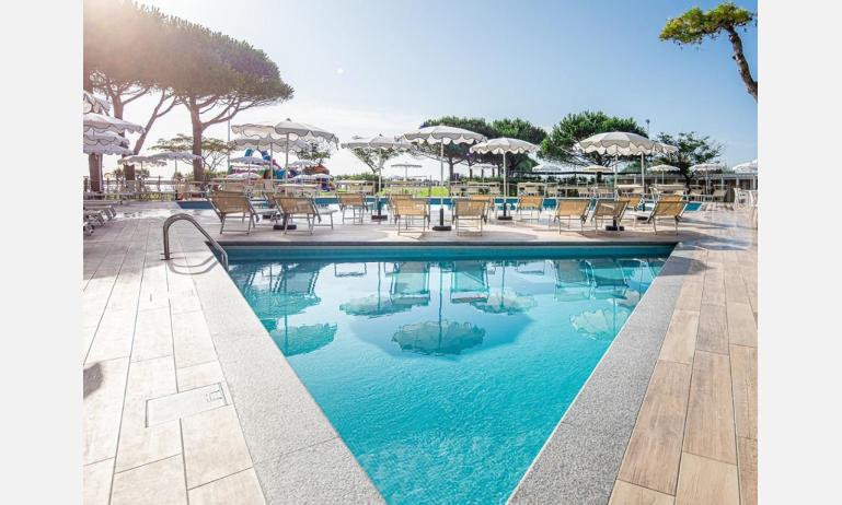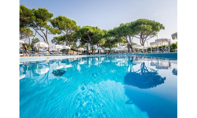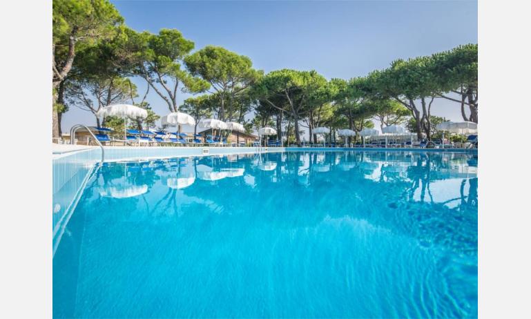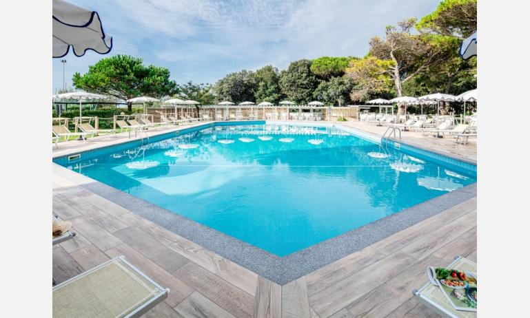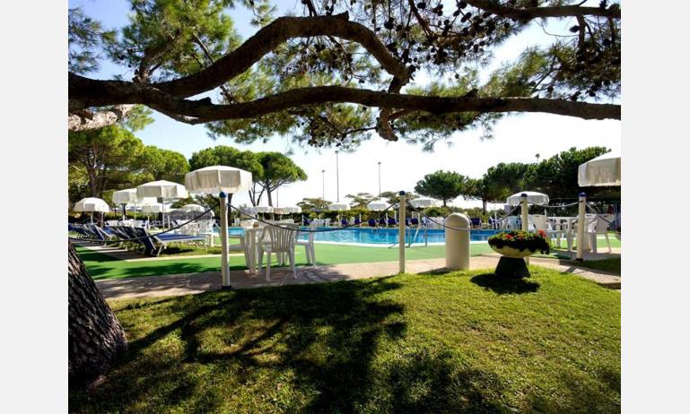 L'hotel è inserito in un ampia area di circa 25.000 m2 e dispone di piscine per adulti e bambini con ombrelloni e lettini e bar, area sportiva equipaggiata con 2 campi da tennis in erba sintetica (a pagamento), campo da calcetto in erba naturale, pallavolo, basket, bocce e 4 tavolini da ping pong.