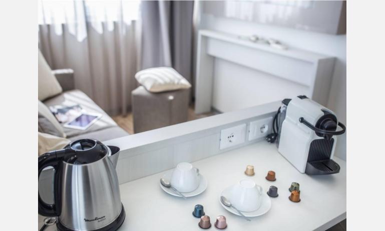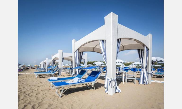 Spiaggia privata con ombrellone, lettini e cabina spogliatoio, animazione per bambini e biciclette elettriche (con supplemento).