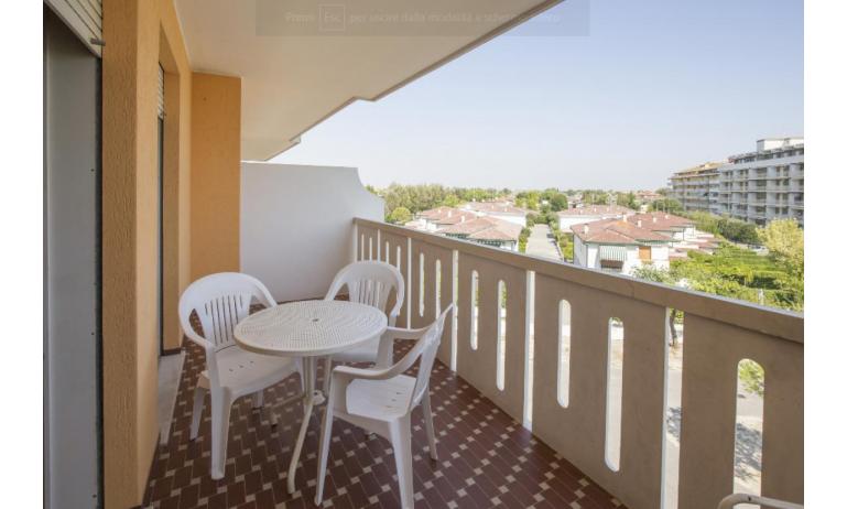 B4: appartamento bilocale (circa 43 m²) composto da soggiorno con angolo cottura e divano letto doppio, camera con letto matrimoniale, bagno con doccia, balcone arredato con tavolino e sedie. – max 4 persone